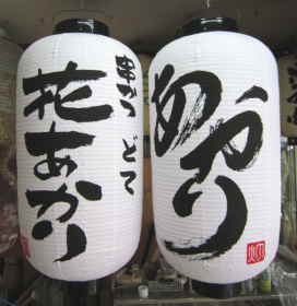 - 当店のみ製作している布提灯は、風雨に強く和紙やビニールよりも強い丈夫な提灯です。