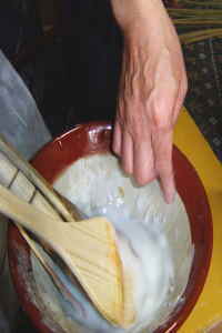 のりは米糊を使用し提灯の大きさに合わせて粘りを変えます。